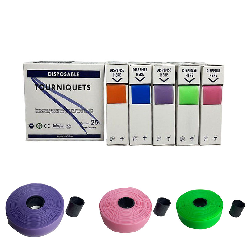 일회용 TPE 지혈대는 열가소성 엘라스토머 (TPE) 의료 급 중합체 물질로 만들어졌습니다. TPE 재료는 우수한 탄력성과 피부 호환성을 결합하여 안정적인 압축력을 제공합니다.